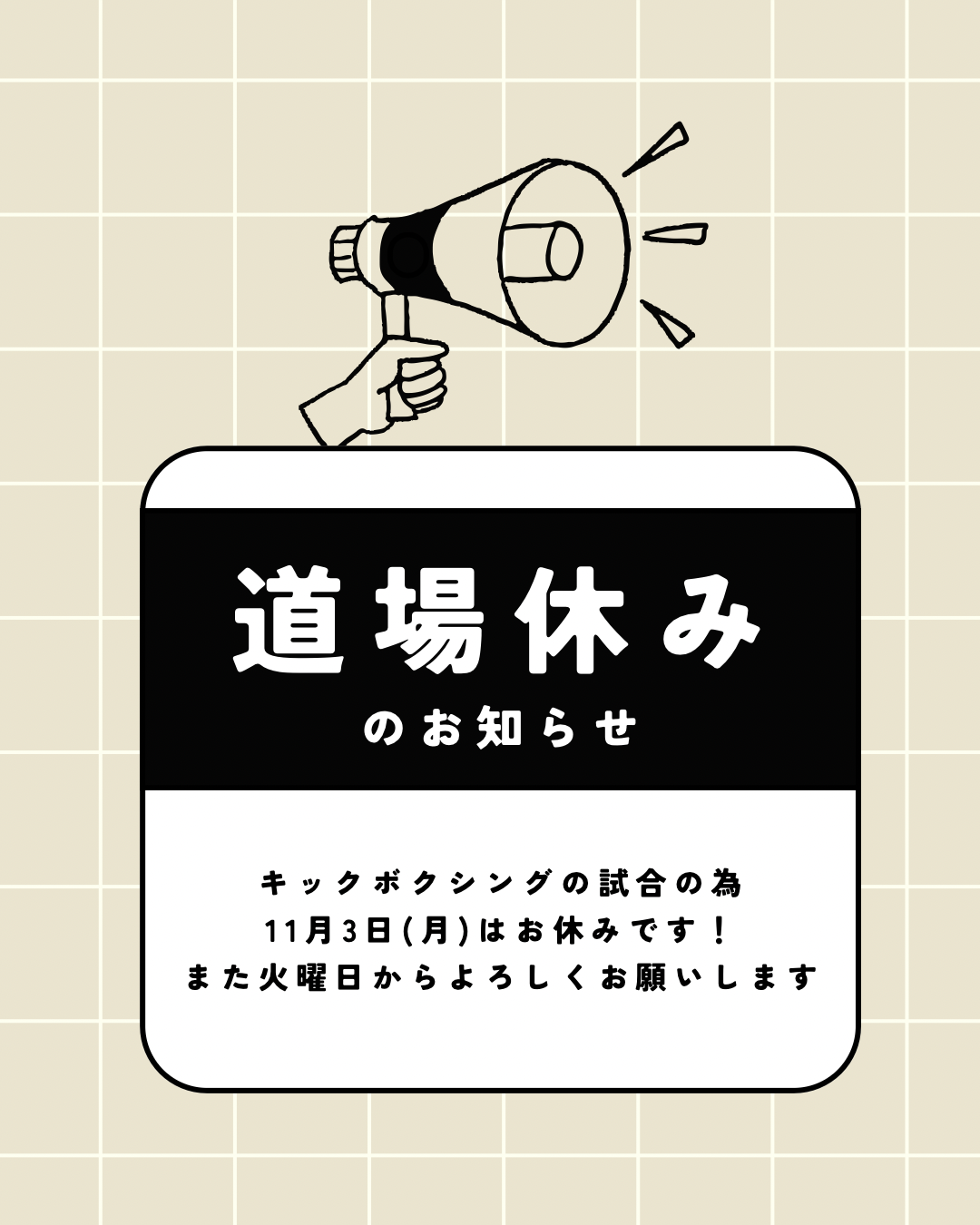 11月3日(月)道場は休みです